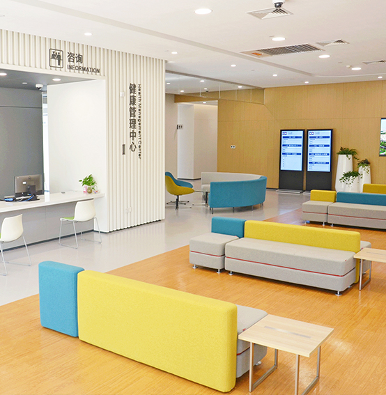 健康管理中心建筑总面积 1767平方米,其中一楼建筑总面积921平方米,二楼建筑总面积846平方米,每个独立诊室的面积不少于8平方米,体检通道与门诊患者通道分开,环境舒适温馨,2022年服务心血管专项体检人数超8324人。检前有专职医务人员作详细体检流程安排,智能排队叫号系统可实时计算各项目排队情况,并通过手机信息动态提醒疏导,减少侯检时间;检查科室设置集中,免去往来奔波之苦;免费提供营养早餐,提供人性化的高效体检服务。